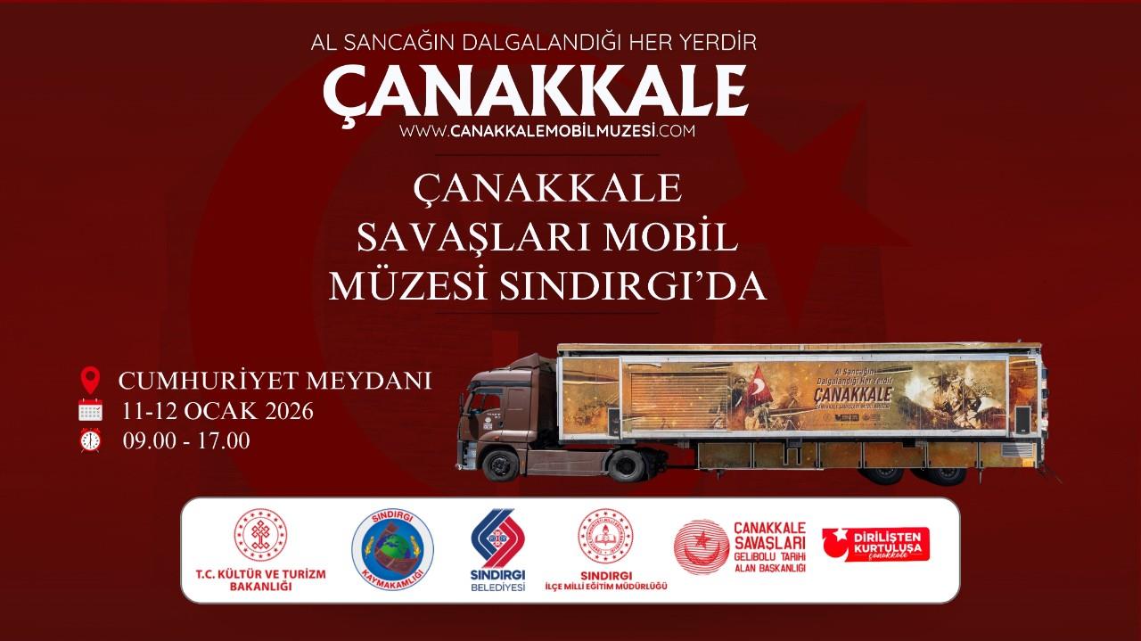 Milli Mücadele ruhunun simgelerinden Kuvayımilliye şehri Sındırgı, milli şuurumuzu ve Çanakkale ruhunu gelecek kuşaklara aktarmayı amaçlayan Çanakkale Savaşları Mobil Müzesi’ne ev sahipliği yapıyor. Çanakkale Savaşları Tarihi Alan Başkanlığı’na bağlı olan mobil müze; Belediyemiz Kültür, Sanat ve Sosyal İşler Müdürlüğü iş birliğiyle 11–12 Ocak 2026 tarihlerinde Cumhuriyet Meydanı’nda vatandaşlarımızla buluşuyor. Çanakkale Cephesine ait çeşitli materyallerin, videoların ve özgün savaş objelerinin sergilendiği mobil müze; dış ses, ambiyans ve özel tasarımıyla, milletimizin bağımsızlık mücadelesini simgeleyen Çanakkale ruhunu ziyaretçilerine yerinde hissettirmeyi hedefliyor. “Al Sancağın Dalgalandığı Her Yerdir Çanakkale” mottosuyla yola çıkan Çanakkale Savaşları Mobil Müzesi; özellikle öğrencilerimiz ve gençlerimiz başta olmak üzere tüm hemşehrilerimize, tarihimizin destansı mücadelesini yakından tanıma imkânı sunacaktır. Tarihimizi yakından tanımak, ecdadımızın kahramanlıklarına tanıklık etmek; depremden etkilenen çocuklarımızın moral ve motivasyonunu artırmak ve Kuvayımilliye ruhuyla yoğrulmuş Sındırgı’da Çanakkale ruhunu hep birlikte yaşatmak amacıyla tüm hemşehrilerimizi bekliyoruz. Etkinlik Bilgileri: Yer: Cumhuriyet Meydanı Tarih: 11–12 Ocak 2026 Saat: 09.00 – 17.00Çanakkale Savaşları Mobil Müzesi Kuvayımilliye Şehri Sındırgı’da