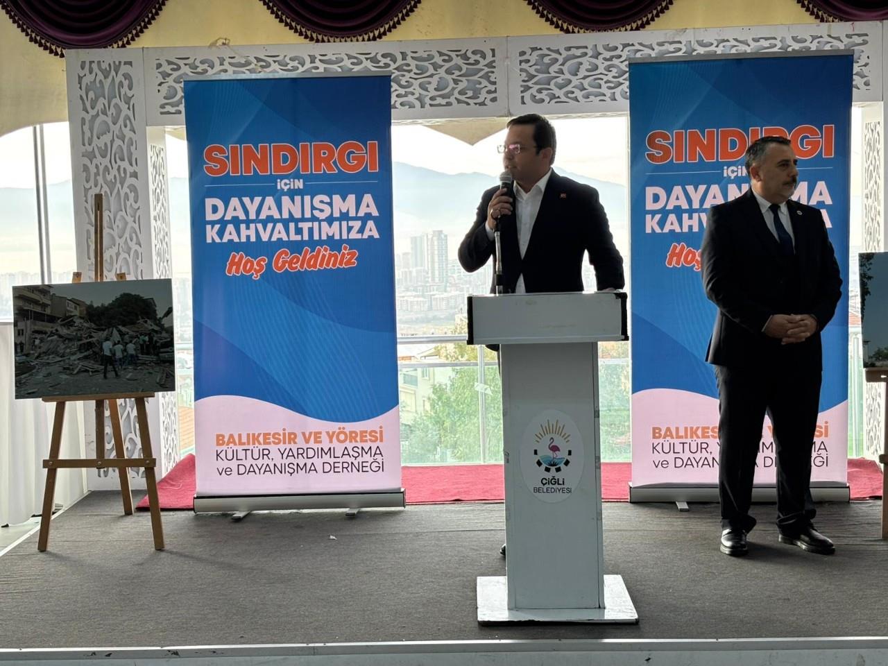 Sındırgı İçin Dayanışma Kahvaltısındaki Gelirler Depremzedelere Umut Olacak 10 Ağustos ve 27 Ekim’de 6.1 şiddetindeki art arda meydana gelen ana şok depremleriyle sarsılan Balıkesir’in Sındırgı ilçesinde yaralar dayanışma ruhu ile sarılıyor. Depremler sonrası kaydedilen 20 bini aşkın sarsıntılar nedeniyle Sındırgı halkına destek amacıyla Balıkesir ve Yöresi Kültür, Yardımlaşma ve Dayanışma Derneği tarafından İzmir’de “Sındırgı İçin Dayanışma Kahvaltısı” düzenlendi. Etkinlikten elde edilen tüm gelir, Sındırgı’da depremden etkilenen vatandaşlara aktarılacak. Dayanışma Programına; Balıkesir ve Yöresi Kültür, Yardımlaşma ve Dayanışma Derneği Başkanı Mehmet Gülcan ve yönetim kurulu üyelerinin yanı sıra Sındırgı Belediye Başkanı Serkan Sak ve eşi Gonca Sak, Anahtar Parti Genel Başkan Yardımcısı Mehmet Ali Kalafat, Sındırgı Belediye Başkan Yardımcısı Muhammet Şahin, Çiğli Belediye Başkanı Onur Emrah Yıldız ve meclis üyeleri, geçmiş dönem İzmir Milletvekili Hamza Dağ, CHP Çiğli İlçe Başkanı Erkan Akar ve yönetimi, CHP Sındırgı İlçe Başkanı Ahmet Alğın ve yönetimi, Çiğli AKP İlçe Başkanı Oktay Özdemir ve yönetimi katılım sağladı. “Birlik oldukça iyileşeceğiz” Programda konuşan Sındırgı Belediye Başkanı Serkan Sak, ilçenin yaşadığı depremlerin etkilerini ve dayanışmanın önemini vurgulayarak şunları söyledi: “10 Ağustos ve 27 Ekim depremleriyle başlayan süreçte ilçemizde 20 bini aşkın sarsıntı kaydedildi. Bu depremler Sındırgı’mızın hem fiziksel hem de psikolojik olarak derinden etkilenmesine sebep oldu. Zorlu günlerde Balıkesir Büyükşehir Belediyemiz başta olmak üzere devletimizin tüm kurumları, çevre il ve ilçe belediyeleri, STK’lar ve hayırseverler yanımızda oldu. Bu anlamlı organizasyon; dayanışmanın, kardeşliğin ve birlik ruhunun en güzel örneklerinden biridir. Sındırgı için duyarlılık gösteren Dernek Başkanımız Sayın Mehmet Gülcan’a ve Yönetim Kurulu’na, destek veren tüm katılımcılara hemşehrilerim adına teşekkür ediyorum. Hep birlikte iyileşecek, yaralarımızı birlikte saracağız.” Sak, depremzedelerin ihtiyaçlarının karşılanmasında dayanışmanın sürmesinin büyük önem taşıdığını da vurguladı. İzmir ve Sındırgı Arasında Kardeşlik Köprüsü Balıkesir ve Yöresi Kültür, Yardımlaşma ve Dayanışma Derneği Başkanı Mehmet Gülcan, “Hemşehrilerimizin yaralarına bir nebze merhem olabilmek adına Sındırgı İçin Dayanışma Kahvaltısını düzenledik. Katılan ve destek olan herkese çok teşekkür ederiz.” dedi. Konuşmaların ardından program toplu fotoğraf çekimiyle sona erdi.İzmir’den Sındırgı’ya Destek Eli
